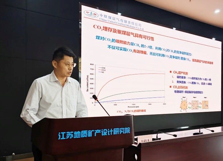 开幕式后,会议以“CCUS技术创新,引领江苏低碳转型”为主题,邀请中国石油大学(北京)地球物理学院院长、碳捕集利用封存国际创新研究院院长芮振华教授,东南大学人才办主任段伦博教授,中国石油化工股份有限公司华东油气分公司勘探开发研究院原副院长、《油气藏评价与开发》副主编陈祖华研究员,中联煤层气有限责任公司勘探开发研究院勘探总师张守仁高级工程师,中国地质调查局水文地质环境地质调查中心国土空间综合研究室主任刁玉杰正高级工程师,江苏地质矿产设计研究院(中国煤炭地质总局检测中心)总工程师王彦君正高级工程师以及中国矿业大学资源与地球科学学院刘世奇研究员作特邀报告。与会专家分析了碳捕集利用与封存技术发展面临的形势,梳理了行业动态,介绍了流化床技术、苏北盆地CCUS技术、CO2驱煤层气技术、国家碳封存潜力“一张图”建设、煤炭地质与碳封存、CO2地质封存与能源资源协同理论方法等领域的研究成果和实践经验,展示了当前CCUS领域最前沿的研究内容。