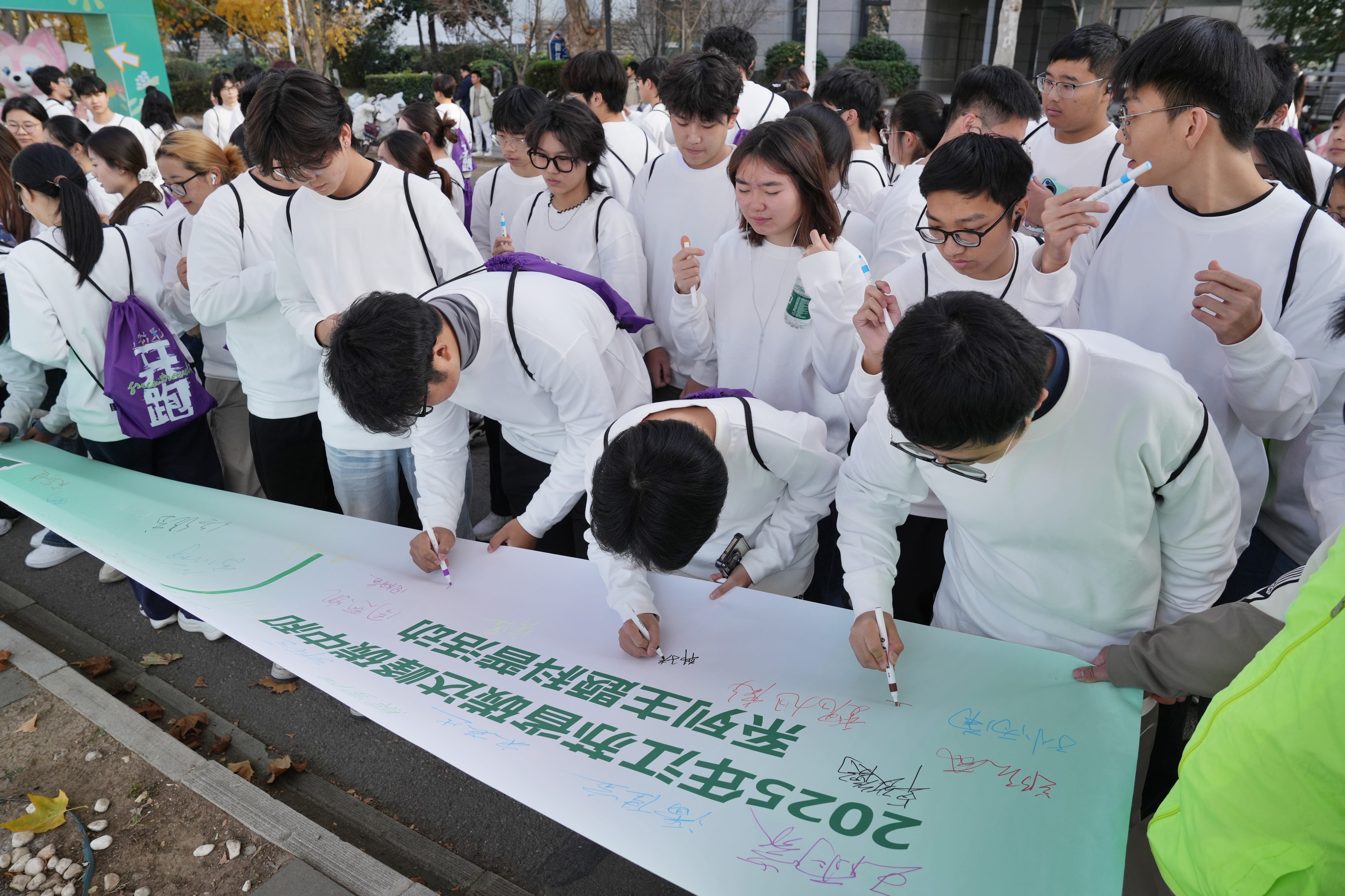 活动现场,来自东南大学、南京理工大学、南京师范大学、南京林业大学、南京信息工程大学、南京科技职业学院的师生代表,在低碳承诺条幅上郑重签姓。笔尖落下的不仅是身份标识,更是青年群体对绿色生活的约定。